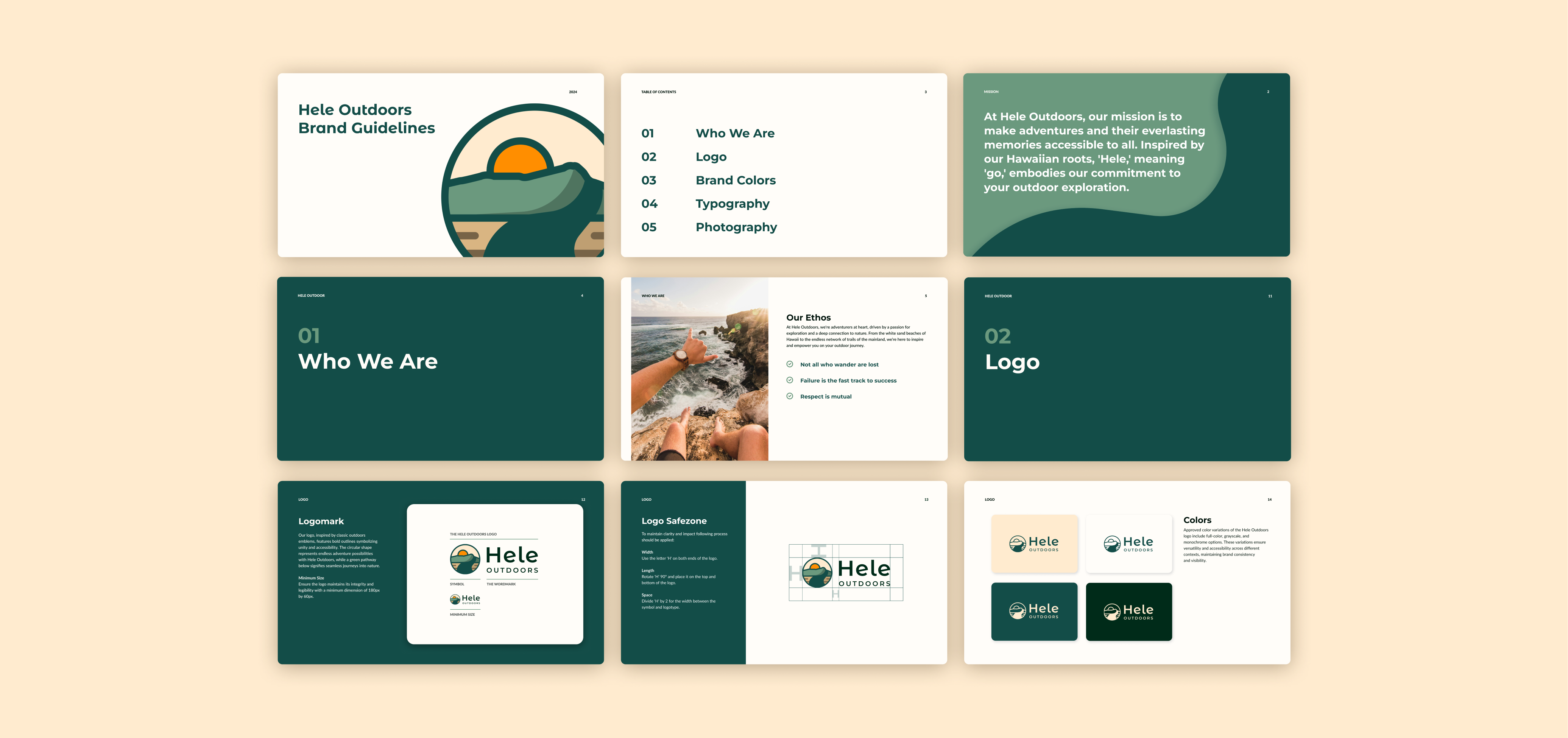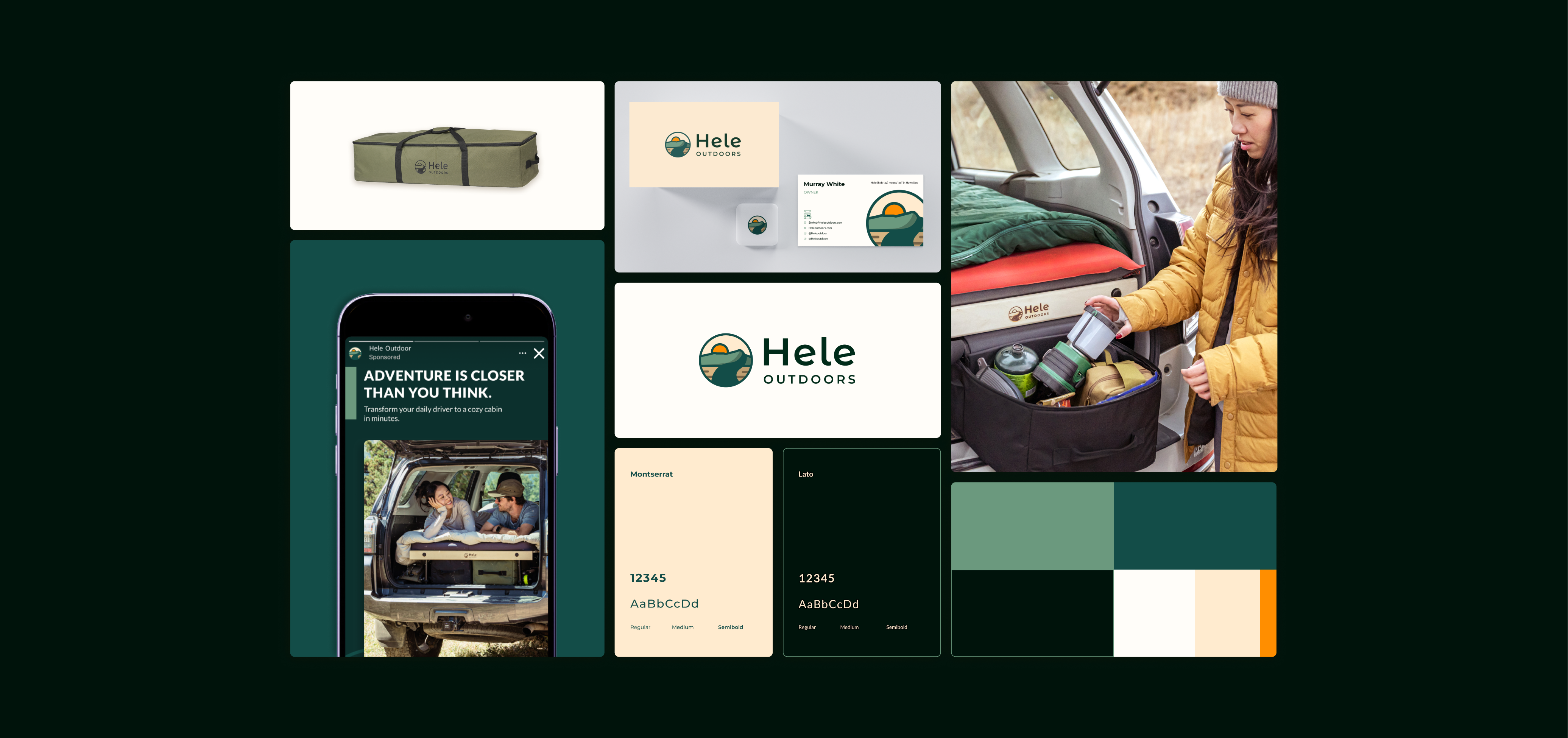Hele Outdoors was created to make the outdoors more accessible — starting with The Hele Box, a curated gear kit for everyday explorers. I was brought on to design a brand identity that felt grounded, bold, and human — something that invited people in, not kept them out.
