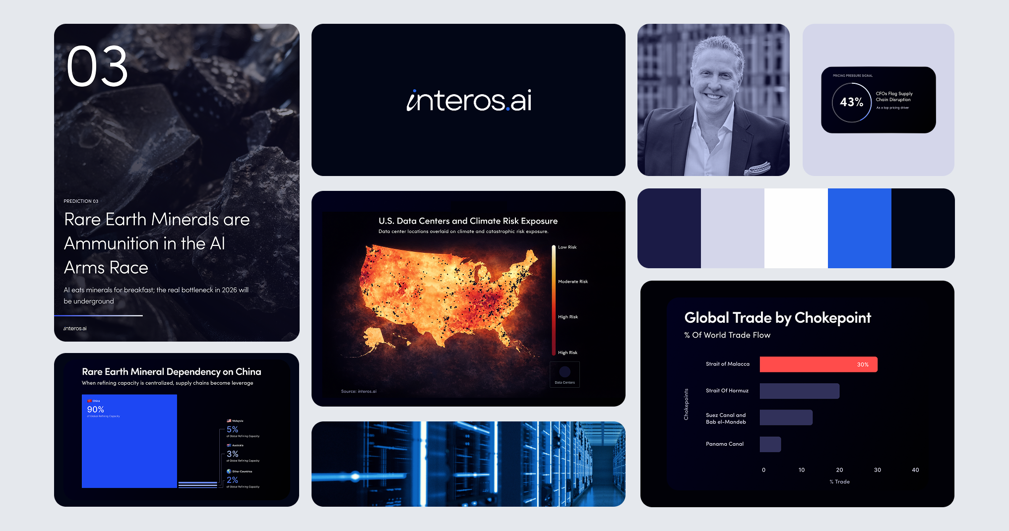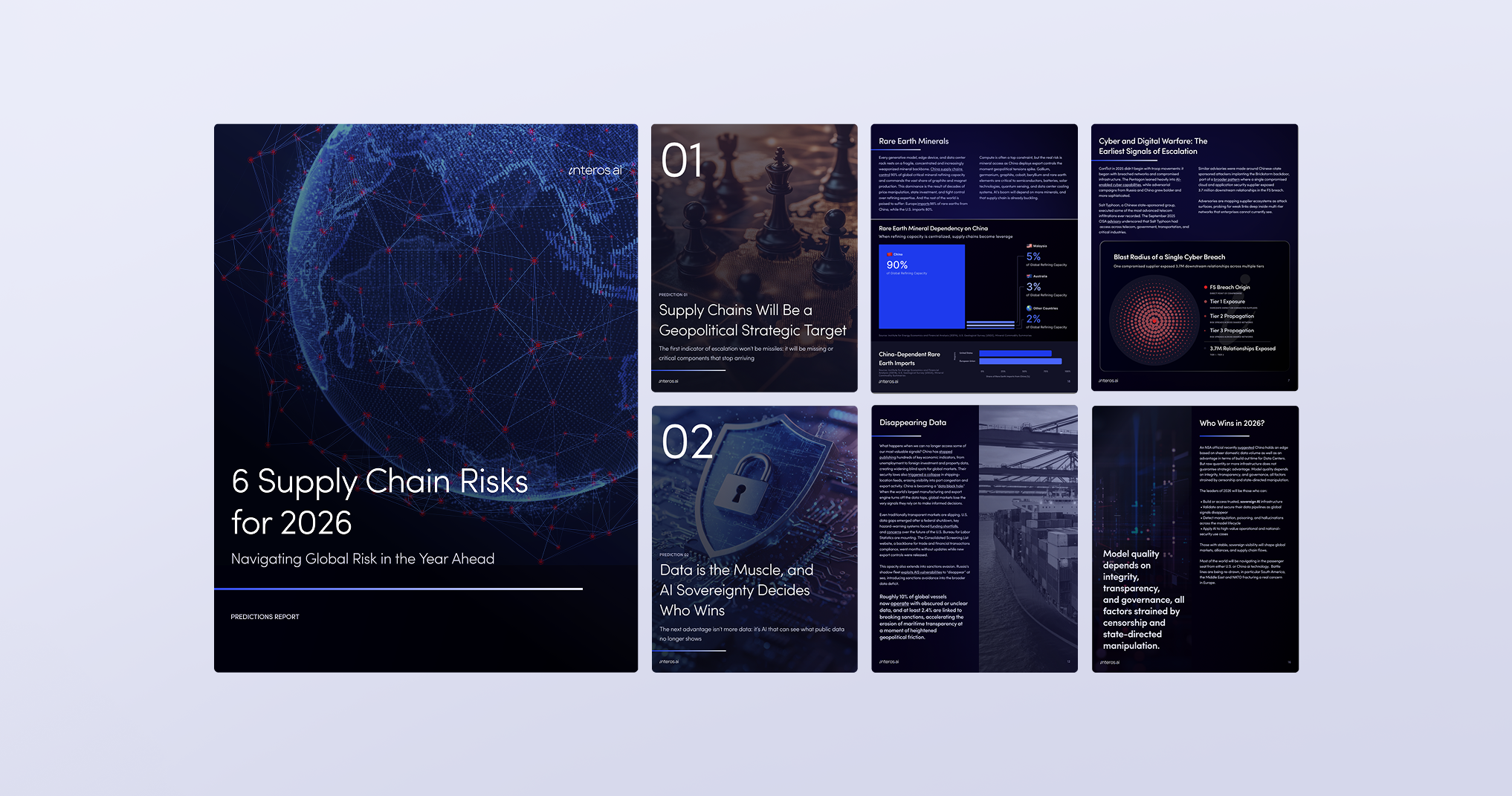 Interos analyzes billions of global supply-chain relationships using AI and network intelligence. This flagship predictions report translated complex geopolitical data into clear visual insights for enterprise leaders.